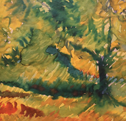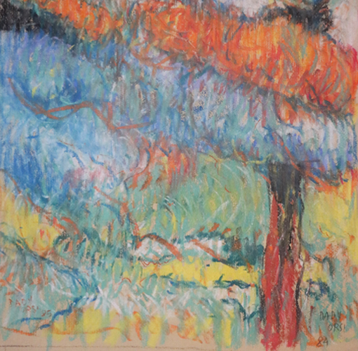 Questo tema, divenuto in seguito il titolo di una serie di quadri, poi di una mostra alla Galleria Schubert, si impose attraverso le conversazioni che avvenivano spesso alla Costella dove non mancavano visioni, percezioni e stimoli per così dire naturalistici. Anche se di natura intatta non c’era nulla (come non ce n’è da nessuna parte), dominava la folta presenza di vecchi ulivi che risalivano la collina a balze (sostenute da muri di pietre a secco) dal cortiletto impervio della mia casa opposto al mare. Proposi a Dady di trasformare la realtà in cui cercavamo di immedesimarci (stare/essere fra i tronchi e sotto le chiome delle piante) in composizioni di masse e segni a tratto forti, né geometrico-astratte né apertamente esplicative. Avrebbe potuto impiegare qualsiasi mezzo, eppure Dady scelse il più semplice, i pastelli. I colori sarebbero come scaturiti dalle dita (di un esperto colorista come lui) quasi da soli, coerenti al paesaggio. Non c’erano fratture nelle calme sensazioni aleggianti fra gli ulivi. Forse potevamo pensare a matasse di lana multicolori.